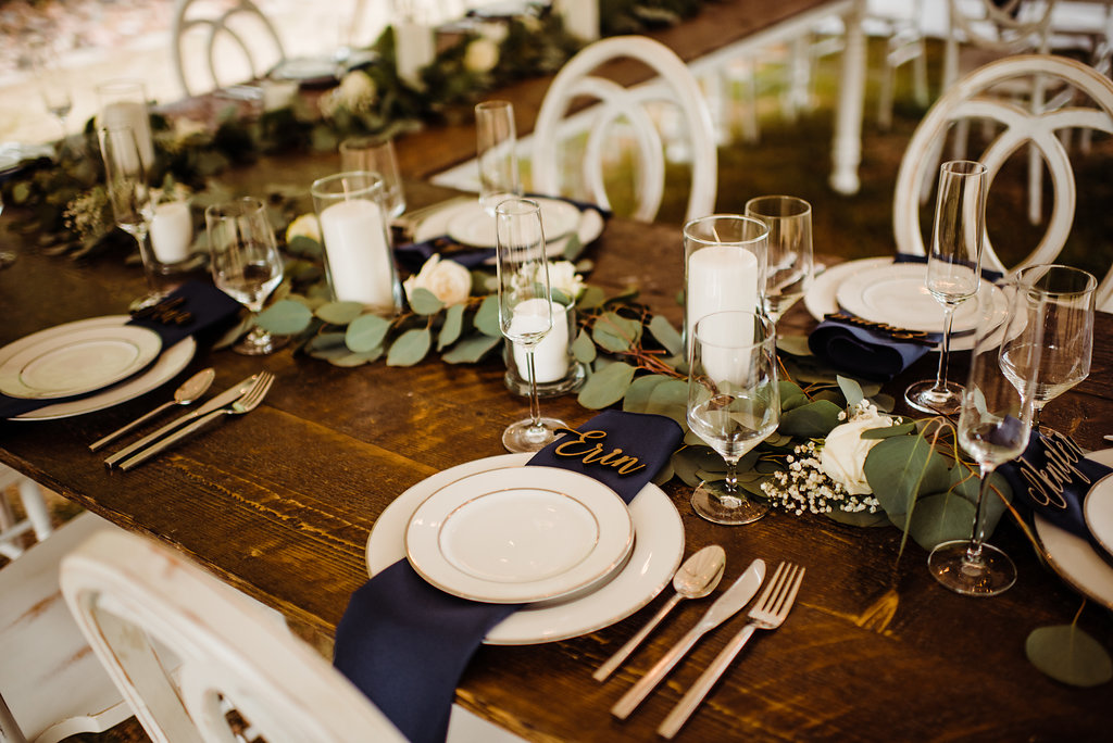 Place settings are easy and affordable, and are a great feature to concentrate on when you want to spruce up with greens or blooms! A simple sprig of Rosemary or snipped Aster bloom can add a pop of color and charm to any plate!