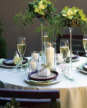 There are some other interesting suggestions that are of course, made of glass and take the shape of champagne cups and with a pot in the end. These ornaments are filled with flowers that have green tones and are combined with green plants that go really wonderful together; quite an interesting idea if we come to think of it and we hope that you like how it looks, as much as we do.
