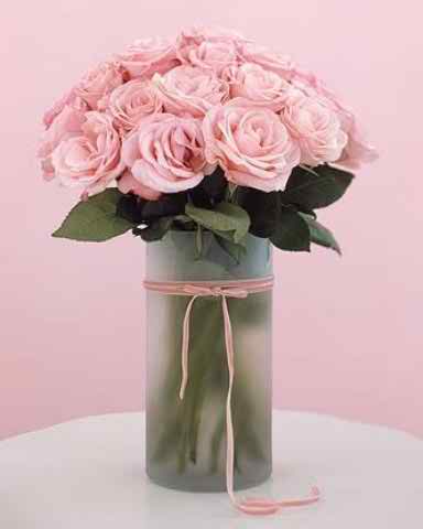 Another great looking suggestion of rose flower arrangement that we are sure you are going to find delightful is the one in the picture below. You can observe the simplicity of a cylindrical vase made of semi transparent glass that blends wonderfully with the pink bloomed roses. We should also mention that the leaves surrounding the flower buds create a complete image of this ideal floral arrangement. You can go even further and add a pink ribbon that ends with a bow, if you still think this bouquet needs a final touch.
