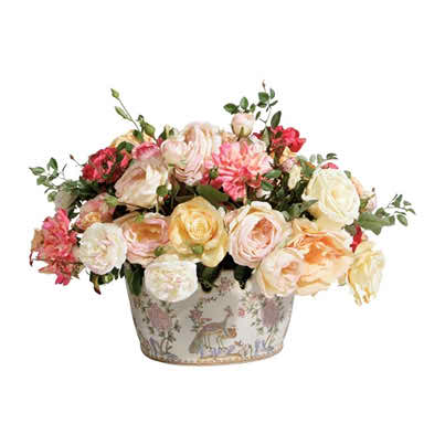 Our first suggesting to you is to use a rose flower arrangement with flowers that are made of silk. These silk flowers are combined in different color tones and these are in different sizes in order to create a nice visual effect. First of all, you need to decide upon the main color of the arrangement. A good idea would be to use yellow blended with orange, pink and red.