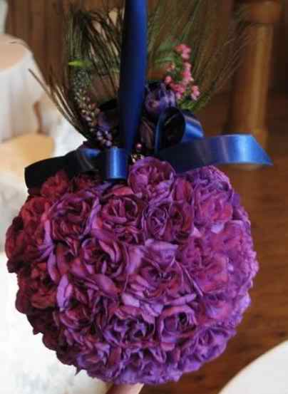 You can pick any species of flowers you like and realize a flower ball with not problems. This spherical bouquet is tied with a shiny blue ribbon and you can add some colored feathers next to this tiny detail. All in all it’s a delightful combination and we really enjoy the visual and chromatic effect.