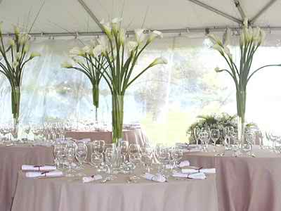We start with some exquisite arrangements that will definitely catch your interest immediately and we hope that you like these as well. Our first suggestion consists of vases filled with long strained callas. The vases are humble and elegant in the same time.