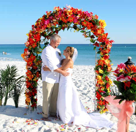 You can adopt also a wedding flowers package that is composed of an arch made by flowers in various colors and some other flower arrangements that are made from the same type of flowers. We recommend this colored combination for an open air wedding and let’s mention that you can have these made of silk if the wind blows too fast or the sun doesn’t help you at all…. Quite a nice combination and idea, don’t you think so?