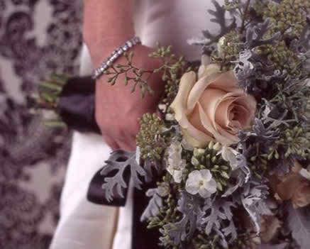 The next winter flower arrangement is definitely one with an icy aspect and this is something that creates a really interesting visual effect. So, this bridal bouquet is made with roses in cream tone and all around them there are used green plants and some with a grey aspect as well. This is indeed a gorgeous combination and you can be sure that it’s not going to let you down. Wrap around the flower strains a black ribbon and you can consider this bridal bouquet as the perfect flower arrangement.