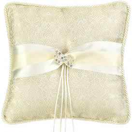 A simple pillow can be made by your mother by knitting a material and tying it together in a pillow shape! The perfect color is white! Place in one side of the pillow a bow made of a nicely colored ribbon and after you can place the rings near the bow too!