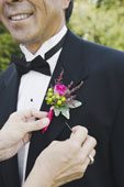 Some times ago the wedding day was believed to be a moment in which the bad spirits were called. In consequence, there were used some herbs in order to protect the couple and the guests from bad things, hers that were worn around the waist, in the hair or on the chest. It seems that the idea of cockades is reminiscent to those periods and some of the grooms apply for them as well, but other have renounced to this tradition completely.
