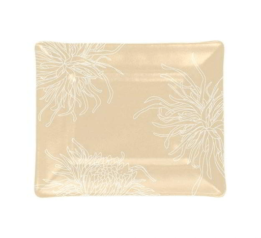 This gorgeous, brushed square plate is the perfect way to top off your dinner party. With a slightly raised rim and dripped in a pearly white foundation – the jade green accents pop right out, offering up a romantic and girlishly charming finished look.