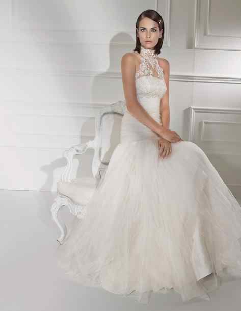 The dress has a straight neckline and over it there’s a layer made of semi transparent fabric that goes on the chest with flower embroidery and with collar at the basis. Indeed, gorgeous models as well….