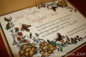 Besides the golden invitations that were suggested some articles before, you also have the variant of the invitations with models of flowers! These types of invitations are not that expensive and are both elegant and give a warm feeling in the same time! Here you have some suggestions you may want to read and make a general idea regarding the wedding invitations that have flowers on them!