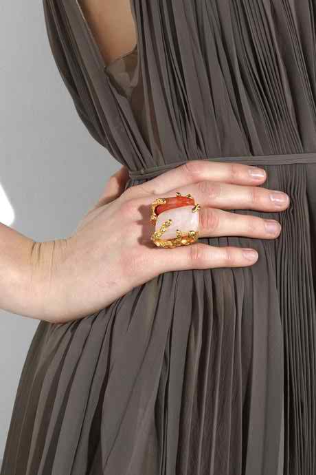 This one is made of two differently colored stones on top and it has a really nice detail on the margins of the stone detail. You can observe some spider legs here and there and this is a really interesting visual effect created by the pieces of gold. Quite an interesting ring don’t you think so? Well, it definitely is and it’s designer made.