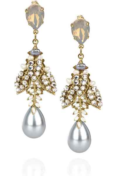 First of all, we want to start with a pair of earrings that seem to be made accordingly to the chandelier earrings and they’re really interesting looking in the same time due to the elements involved in them. So, they’re made with pearls, gold and a multitude of glittery stones. Let’s also mention that they seem to imitate the branches of a tree with flowers and they quite succeed in doing it.