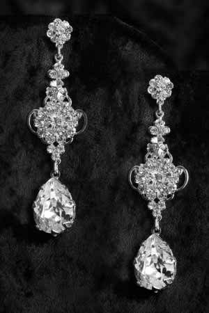 This next pair of earrings can be placed for sure in the area of fine wedding jewelry! We’re speaking about a pair of earrings, which has only gorgeous details about it. You’re going to be able to observe an oval hanging rhinestone and with filigree and floral posts on it.
