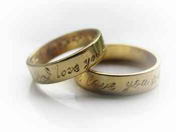 If you really want some unique wedding rings you may choose to carve them with words you often say to one and other, like “I love you!”, “my soul mate” or the name of your song, each others’ names and so on…. no matter what symbol you pick to put on your rings, they will certainly be special!