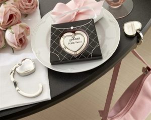 Looking for a neat way to thank the ladies in your bridal party for picking up the slack, or to give to bridal shower or bachelorette party guests? Then this adorable little favor could be for you. It’s called the Heart Purse Valet by Kate Aspen, sold by The Wedding Shoppe – an online wedding store in Canada, and I just think it’s genius!