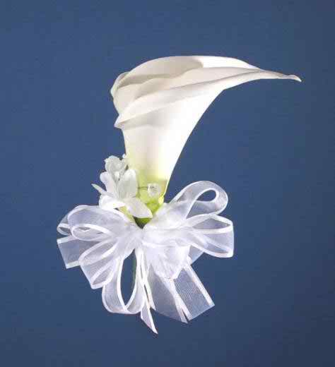 Another model consists of white callas for the bride’s accessory and that has at the base a transparent ribbon that ends tied up with a bow.