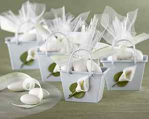 Besides that sweet you can have a small basket, made of plastic and filled with candy! This accessory can have on one side a calla detail graved there. Make sure that the bonbons are placed in a transparent small bag and tied with a nice ribbon!