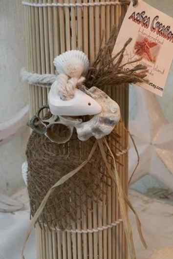 Another great arrangement consists of big cylindrical glass containers which have on the inside a white candles and underneath the candle you can put some clams and shells! This will create an exquisite look and you can be sure that the visual effect is interesting. You can apply also for covering a round chair with a white and blue cover made of satin or silk. Place the chair on a table and put these ornaments on top! You may also need some light to highlight your idea better. Good luck in realizing this great looking ornament!