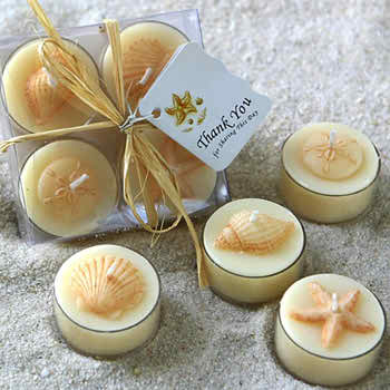 You can have also some nice candles placed in the interior of clams! Although petite, these arrangements look really great and confer a great ambiance. There are also the classical small candles that have on the top some clams and sea stars exactly where the string pierces through!