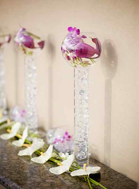 Here’s how we continue with our suggestions of pieces of décor and we offer you some other examples that definitely need to be taken into account. This time we’re speaking about some cylindrical pieces of glass that have at their end a glass bowl which contains purple flower buds. This is a neat combination and next to these you can apply for adding a glass bowl with glass marbles in it and some purple flower buds as well.