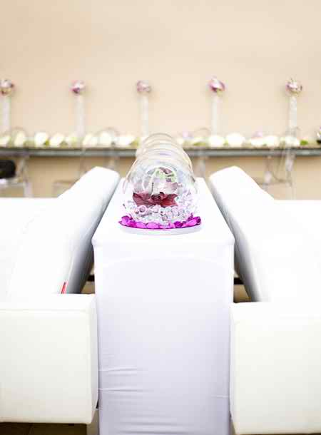 If you apply for big chairs and really comfortable in the same time for the big day or even for sofas in white then it means that you’re going to like pretty much what we have here for you: it’s a big transparent glass bowl that has in its interior glass marbles and let’s not forget about purple flower buds and this is quite a nice combination of details in the same time. Place these containers and arrangements between the sofas and the visual effect is definitely interesting. So much white and so little purple! Indeed, it’s a nice mixture and you can be sure that you’re going to end up with a really elegant wedding.