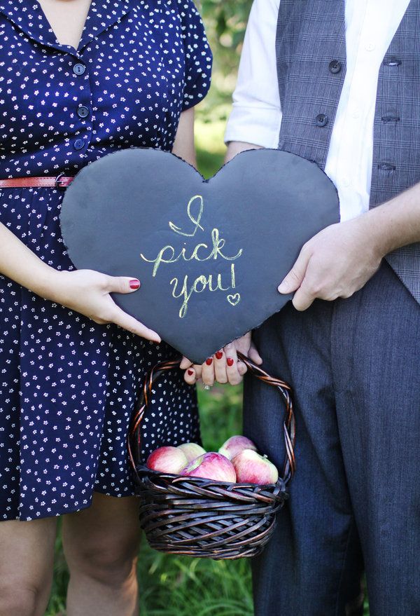 Pour small green or golden apples into tall, clear cylinder vases. Top with a pillow of roses or chrysanthemums. Large, sturdy apples make ideal bases for table numbers. Smaller ones make adorable place card holders: pin on leaf-shaped tags that display your guests’ names.