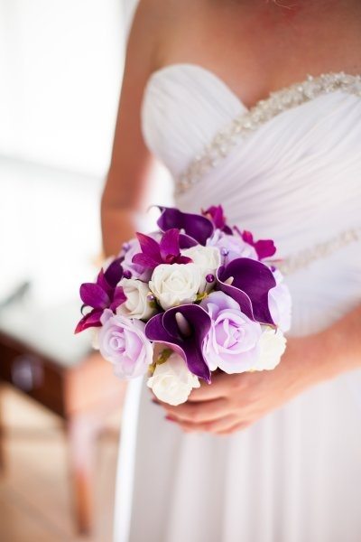 Simply alternating roses and callas in similar hues will make for a beautiful, simple hand-tied wedding posy. The flowers’ contrasting contours will add richness and visual interest to your bridal bouquet.