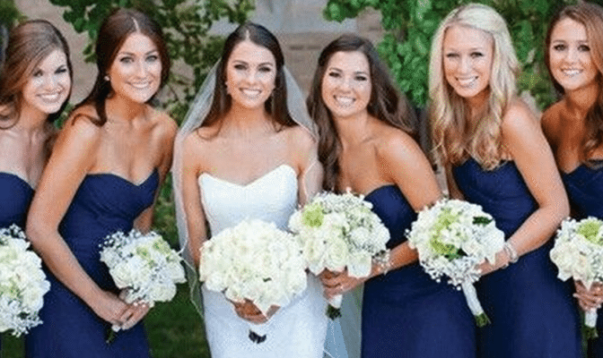 Perhaps the most beautiful flower ever seen — and one that requires no tarting up — is the romantic Picasso Calla, with its crisp white exteriors and sultry purple centers. Combine these with platinum bridesmaid gowns and purple accents for one of the season’s most hauntingly sophisticated looks.