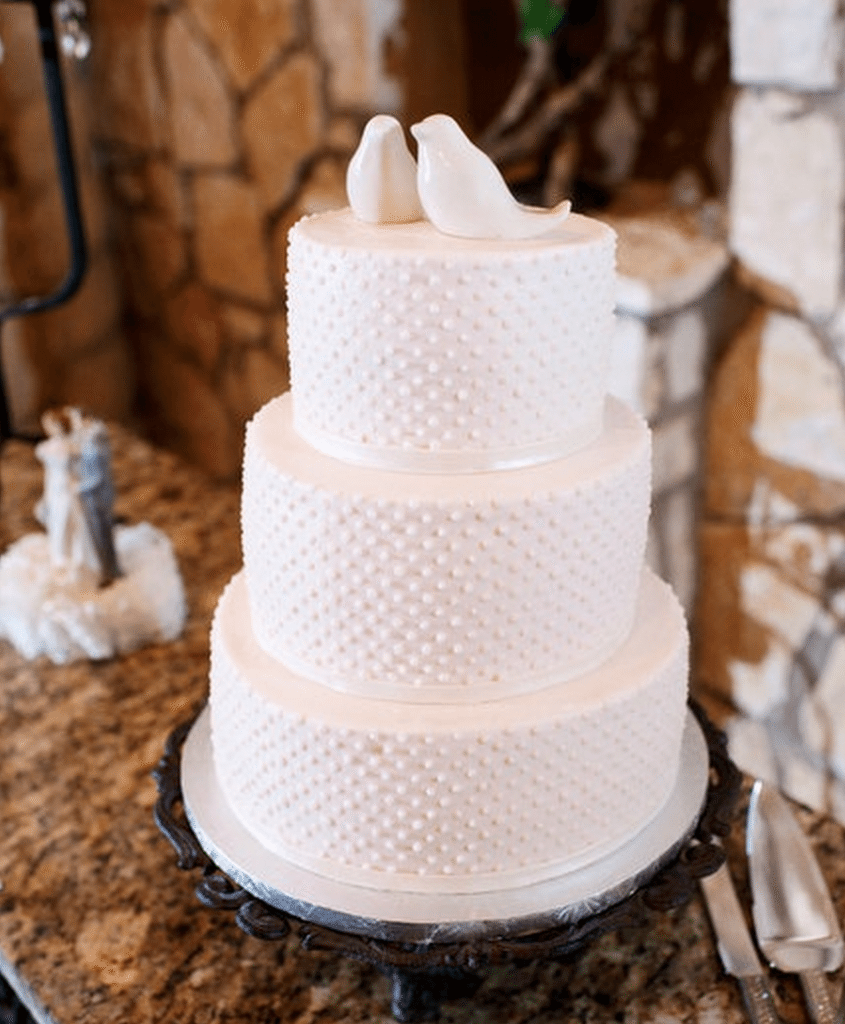 • Porcelain dove cake topper on bed of flowers