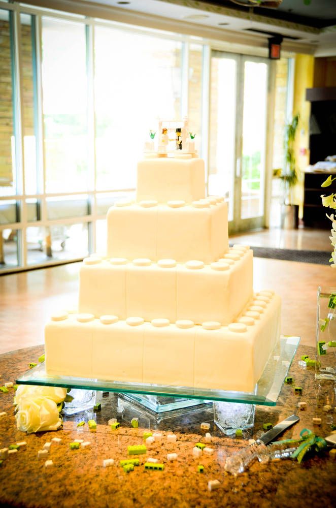 Sara: Well, first we discovered Eric Harshbarger’s Lego wedding cake on the Web … it just fit. At one point in our illustrious history, my husband and I turned down a night on the town to build a Lego train set in his basement.