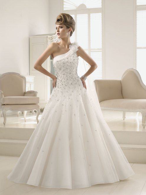 This one-shoulder design is one of my personal favorites because of its unique quality and accents.