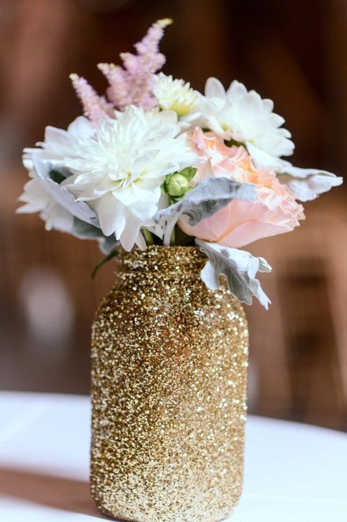 Or go for a more country-chic style with mason jars dip in golden metallics and glitter too!