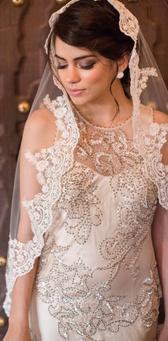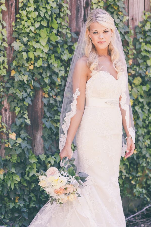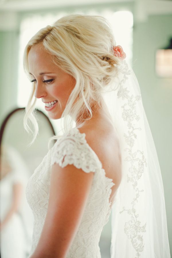 You’re a veil bride if you purchase the veil and headpiece without thinking about your hairstyle and all of your wedding day visions include you in a flowing veil. I know I have a veil bride when she tells me she wants to keep the veil on at the reception. Veil brides love seeing all that white! Details such as edging, pearls or rhinestones, multiple layers and the blusher complete the veil brides’ dreams.