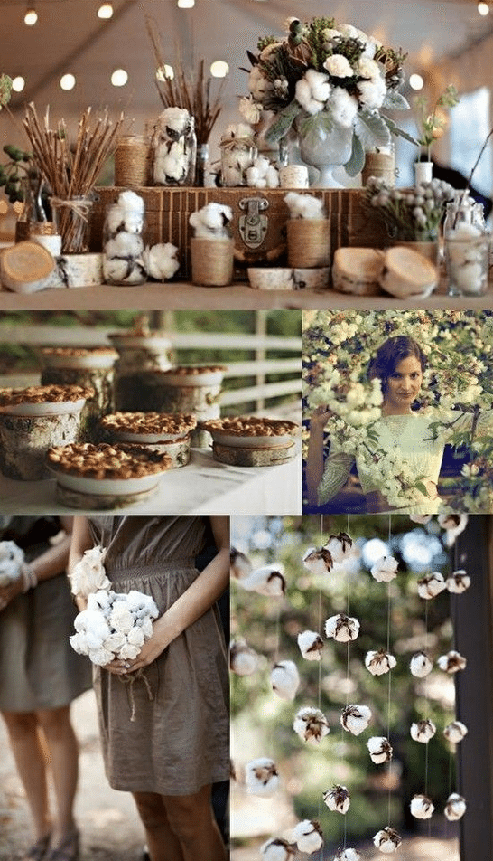Serve food and drink from hay bales covered with wooden planks, dress up scarecrows or hay rolls as a hilarious “bride and groom,” and set up a romantic wishing well for cards and sweet remembrances.