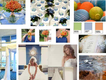 Blue, corral and a touch of green – an ideal combination for a summer wedding theme