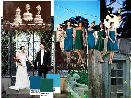 Blue can be used at the level of the bridesmaid dresses, the wedding flowers and some other details in the wedding reception, such as the table cloths and different pieces of décor. Green can also be used as the main color for the bridesmaid dresses and let us also admit that there will be obtained an interesting visual effect together with the bridal gown, which can be realized in a corral tone if you wish to.