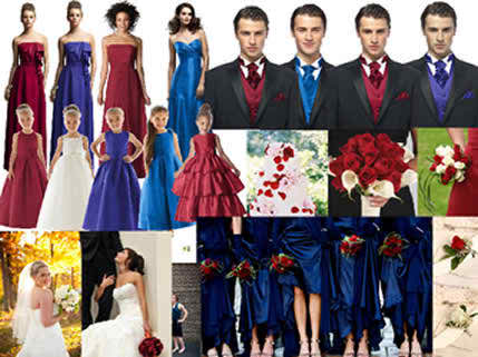 So, where can you apply for these strong combinations? Almost everywhere: at the level of the dresses of course (for the mother of the bride, the bridesmaids, the flower girls) and in the costume of the groom and the story doesn’t end here! There are some other “areas” in which you can use blue and red together: the wedding flower arrangements, the table cloths, the wedding favors as well as the wedding invitations.