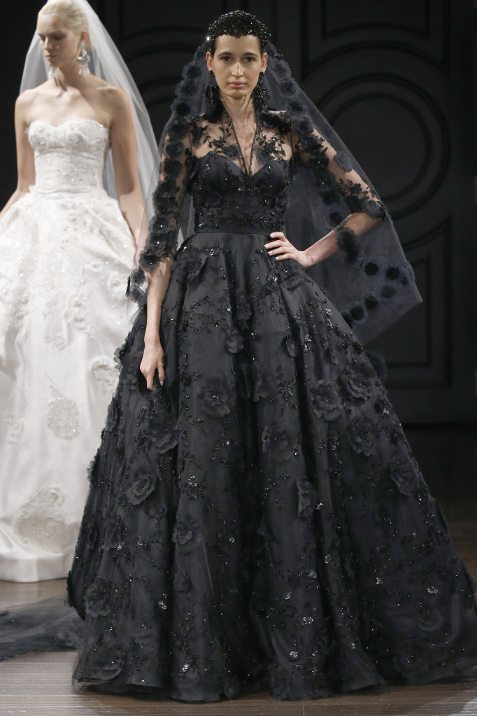 Dipped in black and full of a formal air, stun your guests by walking down the aisle in this gown.