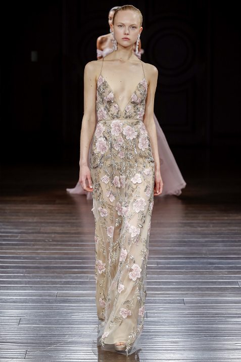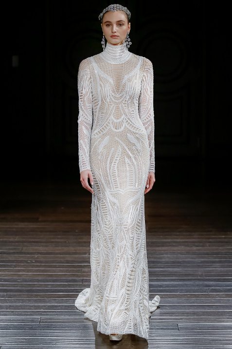 Or go with something a bit lighter like this floral, beaded beauty that’s reminiscent of a Claire Pettibone look.