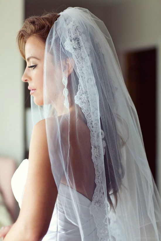So, before you write off your veil take a peek at some real wedding veils we found on Pinterest (if you’re not following us yet, you should. Find us here) that we adored. These wedding veils really do run the full range of styles and lengths. We have some short wedding veils, some long wedding veils and everything in betweern. We’ve tried to make veil inspiration easy and fun whether you’re looking for a traditional veil, vintage veil or a totally unique wedding veil.