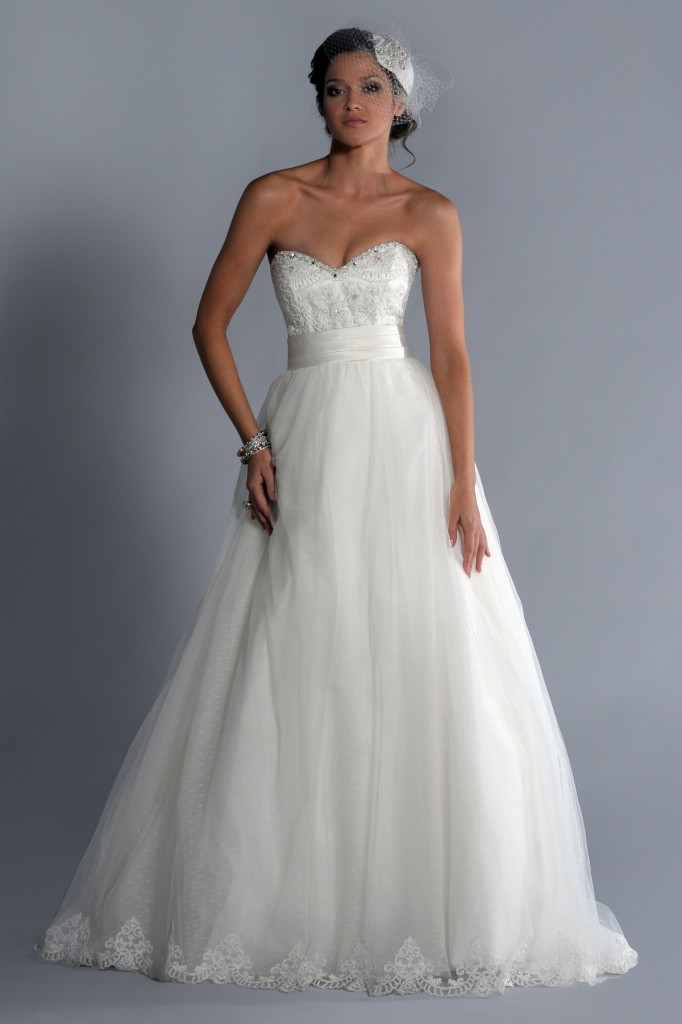 Because I am involved with the wedding industry people love to show me their daughter’s photos. Sometime it is down right painful! One young bride; day time wedding was crowned with an ornate rhinestone and crystal tiara. Chandelier earrings were dangling away and her lovely décolletage was covered with an ornate necklace. Wedding veil was flowing as were bouncing curls or her wedding hairstyle fights for their place in the photo. There were just too many competing factors that her daughter got lost! If something seems to scream at you, or stands out too much, go with your gut. The overall look should flow and be seamless in its expression of you.