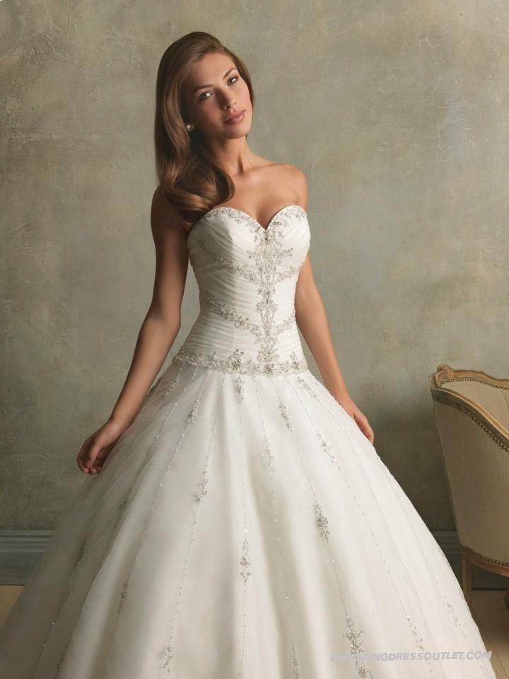This is the most simple and classic style of dress, which is perfect for almost of any kind of venue. The dress shape actually resembles an uppercase A. It follows a complete line starting from chest to hem, fitted near the bodice and finally flows out unhindered till the bottom. This style is especially recommended for shorter figures as the dress can make a petite bride look taller and also de-emphasizes the hips for full figures. But please be clear that A-line silhouette wedding dress is not a suitable style for those thick waists since this shape will only emphasize your waist.