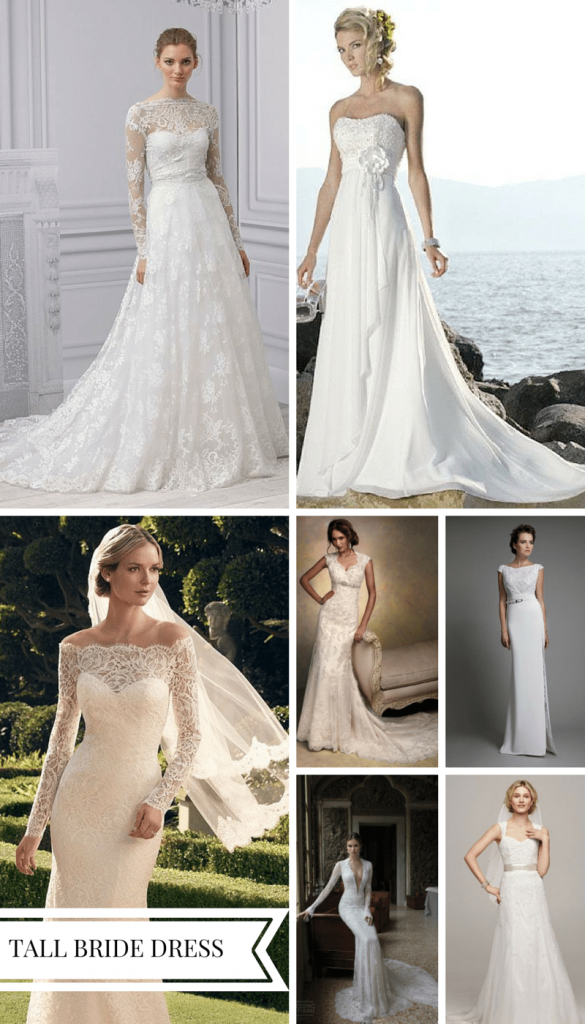 ….go for a dress with a simple silhouette, which emphasizes the natural shape. The lower waistline and floor-sweeping hem do well for longer proportions, and if wearing sleeves, make them longer. This will avoid the “I’m wearing a dress that’s too small!” look. A statuesque figure also doesn’t need a lot of dress embellishments, such as ruffles and rosettes.