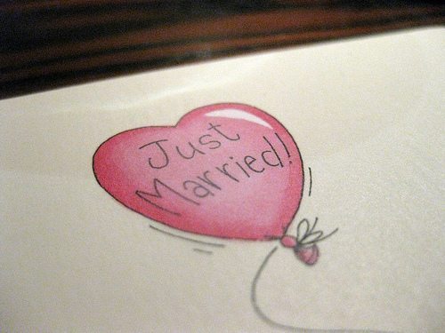 But, it seems that we have touched quite a nice subject: the thematic “just married” sign. Well, in this case you should focus on the colors of the nuptials and on the principal motifs that you have decided to use. For instance, if butterflies, ribbons, hearts and so on, will be in the center of attention at your wedding, then your wedding signs must be accessorized with something like this.