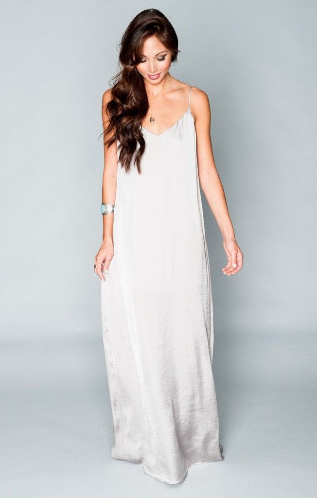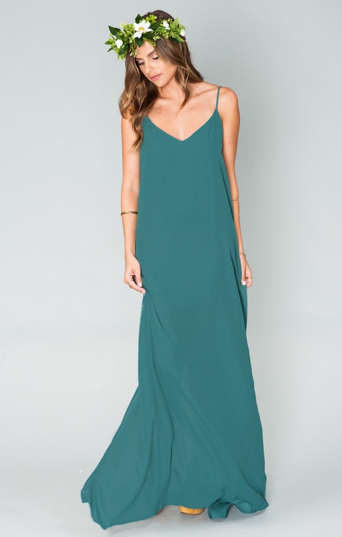 Loose, flowing, romantic and comfortable, this green gown will work for all of your maids.