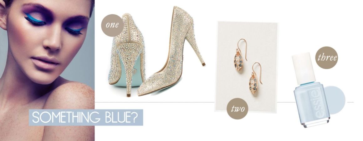 If you want the blue but your colors are opposite hues, stay away from more vibrant shades and go for something a little more subtle, like these shimmering Betsey Johnson heels in champagne with charming sea-colored soles (Macy’s, $139), or look for jewelry with light or dusk-hued stones (shown: Alexandrite Point Drops, Anthropologie, $138). Head to the nail salon and choose a dusty periwinkle or cornflower blue for an endearing nod to the old tradition—mani and pedi, or just on the toes if you’d rather stick to a more demure nude or blush lacquer on your hands. (shown: Borrowed & Blue, Essie, $8.50). Feeling thrifty? Grab a needle and thread and stitch your wedding date (or have Grandma do it) in blue thread along the hem of your dress.