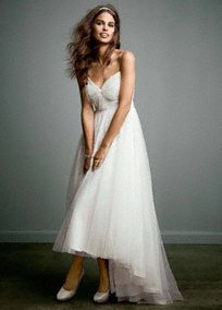 See photos of our favorite dresses from David’s Bridal’s Spring 2014 wedding dress collection. There are lots of top wedding dress designers and a tremendous range of prices to suit all bride types. The designs we loved really embrace a feminine elegance with an enriched minimalistic approach. That’s a big theme for 2014 that we absolutely love. Lots of effortless elegant glamor that will make you want to take off your shoes and go dancing in the rain!