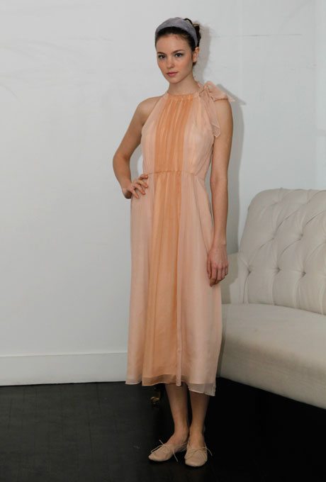 Peach Bridesmaids DressesLove the length, love the ribbon, it’s preppy and sweet for a contemporary and soft wedding day.