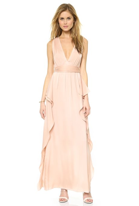 Peach Bridesmaids DressesA Greek-inspired design and a beautiful tone for those with darker complexions.
