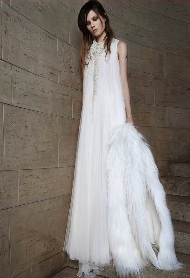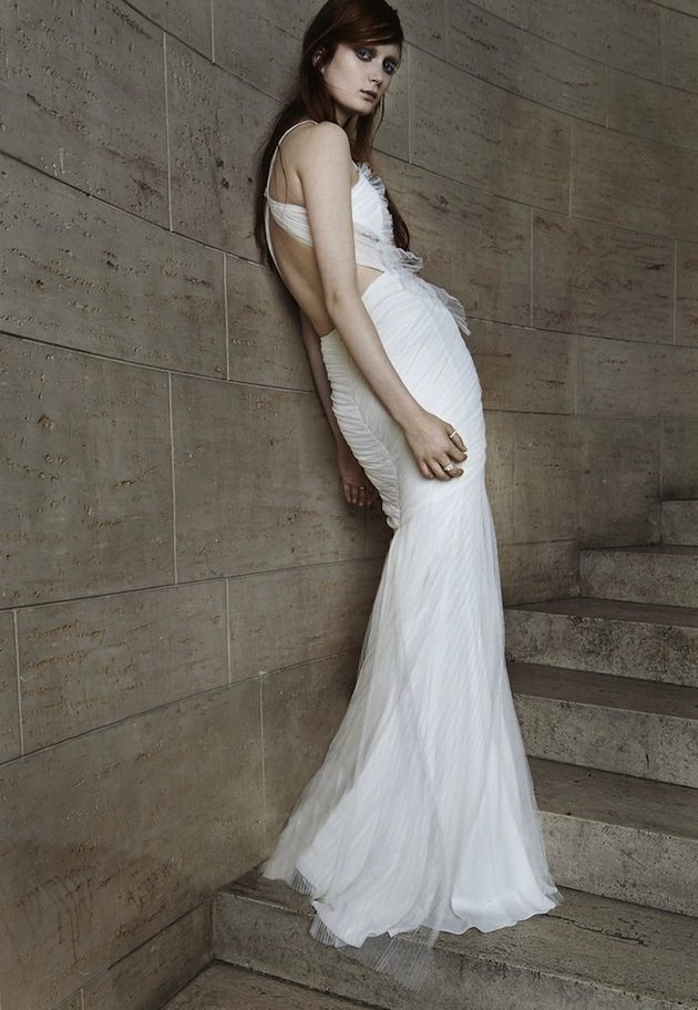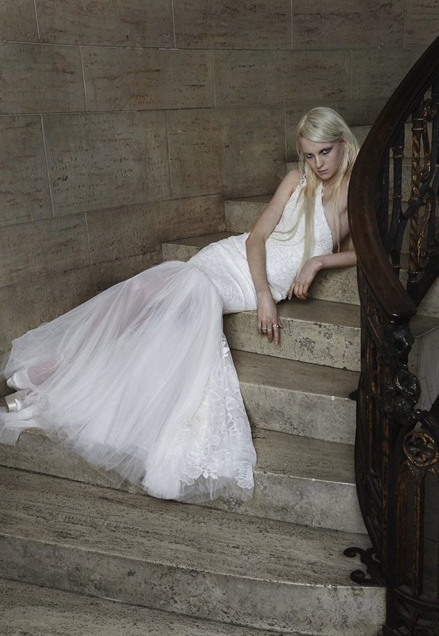 The gowns are nothing short of breath taking but be warned, the campaign images are a far cry from your average, romantic bridal collection – the styling is of the ‘heroine chic’ ilk – think lank, lifeless hair, kohl smudged eyes with frostbitten eyelashes.