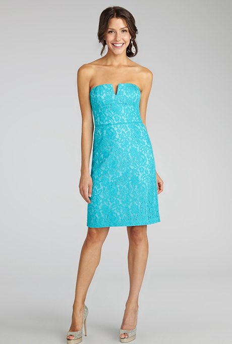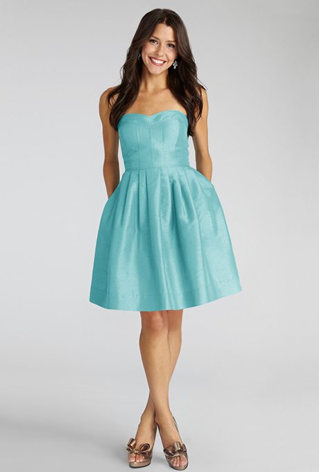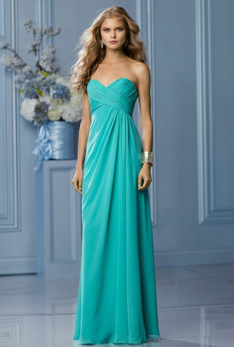 These gowns would float down a springtime or summertime aisle with ease. Water-inspired, dipped in aqua shades, these bridesmaids dresses have a beautiful tone and plenty of versatile shapes.